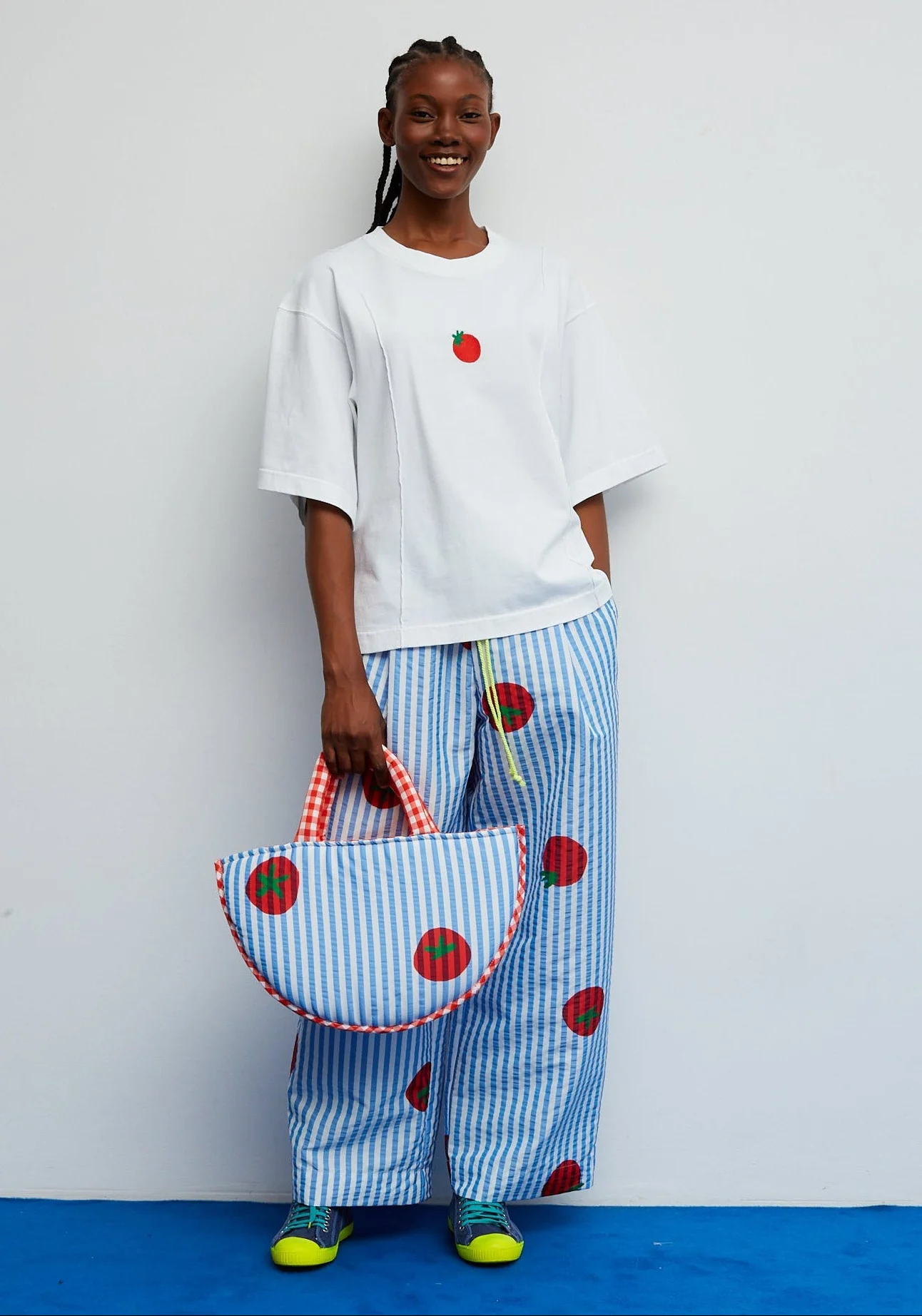 Una camiseta pensada para aportar comodidad y un toque especial a los looks de tu día a día. Presenta un corte recto y relajado que garantiza confort durante todo el día. El pequeño bordado frontal de tomate añade un detalle alegre y distintivo, sello inconfundible de la colección. Su cuello redondo y mangas cortas la convierten en una prenda versátil, fácil de combinar y perfecta para la temporada.